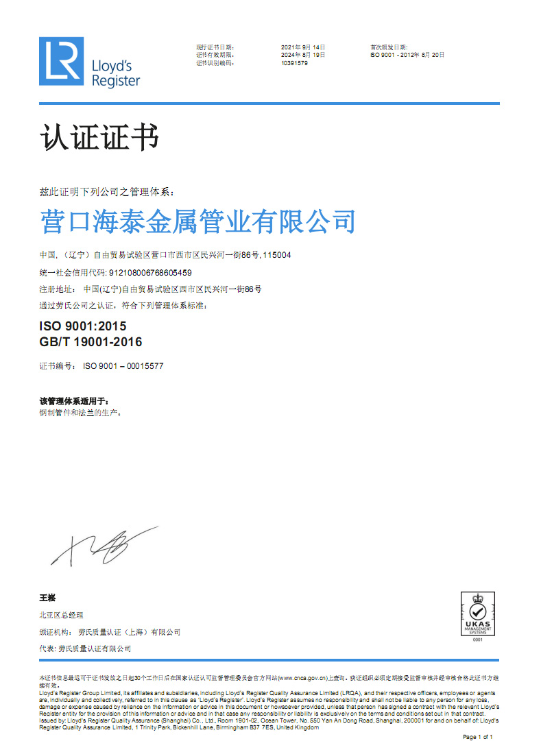 營口海泰金屬管業(yè)有限公司成立于2001年,是專業(yè)生產管道配件的制造經(jīng)營企業(yè)。公司占地面積兩萬五千平方米,坐落于中國遼寧省港口城市營口。營口一市兩港(營口港、鲅魚圈港),東臨大連港四季通航,陸路運輸四通八達交通便利。